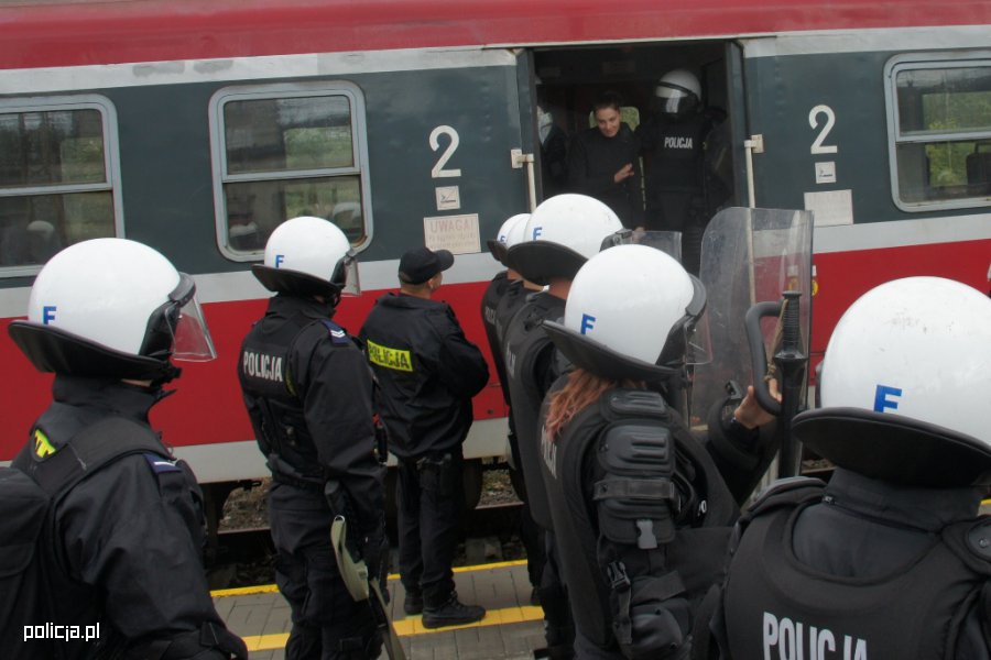 Na dworcu Łódź-Kaliska odbyły się wspólne ćwiczenia funkcjonariuszy Oddziału Prewencji Policji w Łodzi i Straży Ochrony Kolei. Ćwiczenia obserwowała delegacja policjantów ze Słowenii, która wysoko oceniła współdziałanie pododdziałów podczas wyprowadzania chuliganów z pociągu.