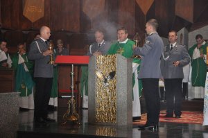 Odprawionej wczoraj Mszy Świętej przewodniczył ego Ekscelencja Ksiądz Arcybiskup Tadeusz Wojda. Gospodarzem uroczystości był Kapelan Podlaskiej Policji ks. Leon Grygorczyk. W uroczystości uczestniczył także Sekretarz Stanu w Ministerstwie Spraw Wewnętrznych i Administracji Jarosław Zieliński, Komendant Wojewódzki Policji w Białymstoku nadinsp. Daniel Kołnierowicz, komendanci miejscy, powiatowi i inni policjanci, przedstawiciele podlaskich służb mundurowych oraz licznie zgromadzeni wierni. Na uroczystości obecne były ponadto poczty sztandarowe reprezentujące jednostki Policji garnizonu podlaskiego oraz Kompania Reprezentacyjna Oddziału Prewencji Policji w Białymstoku. Dodatkowo oprawę mszy uświetnił Chór Komendy Wojewódzkiej Policji w Białymstoku. Zebrani modlili się w intencji wszystkich służb mundurowych. Na zakończenie minister spraw wewnętrznych i administracji oraz Komendant Wojewódzki Policji w Białymstoku podziękowali Arcybiskupowi za pierwszą wspólną Mszę z okazji Święta Patrona Policji oraz wsparcie duchowe potrzebne mundurowym w czasie codziennej służby. Ponadto minister Jarosław Zieliński oraz nadinsp. Daniel Kołnierowicz w asyście Księdza Arcybiskupa Tadeusza Wojdy wręczyli podinsp. Jackowi Tarnowskiemu rozkaz Komendanta Głównego Policji o powołaniu go na stanowisko Zastępcy Komendanta Wojewódzkiego Policji w Białymstoku.