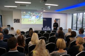 Oficerowie prasowi śląskiego garnizonu policji oraz przedstawiciele katowickiej komendy wojewódzkiej spotkali się na stadionie Arena Zabrze, aby spojrzeć na komunikację społeczną z innej perspektywy. Jej rolę i wpływ na wynik pracy zespołu omówił trener mentalny zabrzańskiej drużyny piłkarskiej. Istotę komunikacji podczas imprez masowych omówił natomiast koordynator policyjnych spottersów. Szkolenie zorganizował Zespół Komunikacji Społecznej Gabinetu Komendanta Wojewódzkiego Policji w Katowicach dzięki uprzejmości władz miasta Zabrze oraz zarządowi klubu Górnika Zabrze.