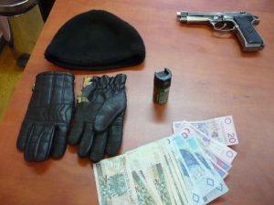 Podczas przeszukania mieszkania, gdzie ostatnio przebywał, odnaleziono pistolet, którym posługiwał się w trakcie napadów. Okazało się, że była to wierna replika pistoletu marki Beretta. Odzyskano także pieniądze pochodzące z przestępstw.