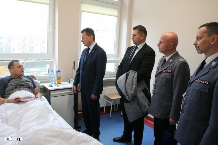 Pan Minister życzył policjantowi szybkiego powrotu do zdrowia.