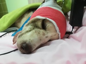 Dobrą informacją jest to, że suczka powoli nabiera sił po bardzo poważnej operacji i wszystko wskazuje na to, że wróci do zdrowia.