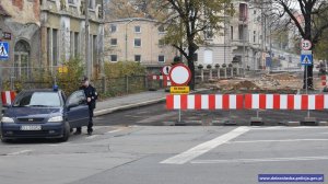 Działania policjantów w związku z ujawnieniem trotylu przy moście w Dzierżoniowie
