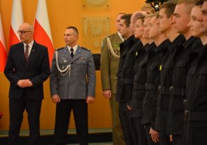 Słowa powitania do nowo przyjętych funkcjonariuszy skierował I Zastępca Komendanta Wojewódzkiego Policji w Gorzowie Wlkp., insp. Krzysztof Sidorowicz: „Dzisiejsza uroczystość jest zwieńczeniem Waszych starań o to, aby zostać funkcjonariuszem polskiej Policji. Nie każdemu jest to dane. Nie każdy może poszczycić się godnością noszenia policyjnego munduru. Można powiedzieć, że jest to szczególny przywilej. Ale służba w Policji to również wyjątkowa powinność wobec społeczeństwa. To podjęcie, z pełną świadomością i odpowiedzialnością, wielu wyzwań oraz stała gotowość do niesienia pomocy wszystkim, którzy jej potrzebują. To czas wytężonej pracy, przestrzegania dyscypliny służbowej, zasad etyki zawodowej oraz nowych doświadczeń w kontaktach z drugim człowiekiem”.