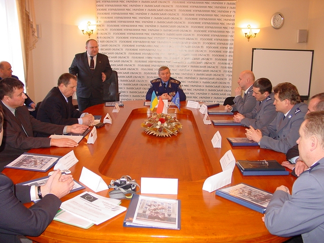 Delegacja podkarpackiej Policji gościła w Głównym Zarządzie MSW Ukrainy w Obwodzie Lwowskim. Podczas wizyty omówiono najbliższe kierunki rozwoju współpracy przygranicznej obu służb państwowych. Podstawą spotkania we Lwowie był projekt wzajemnego doskonalenia zawodowego, zmierzający do zwiększenia bezpieczeństwa mieszkańców rejonu zewnętrznej granicy Wspólnoty Europejskiej.