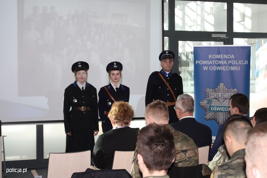 Na zaproszenie Komendanta Powiatowego Policji w Oświęcimiu do oświęcimskiej biblioteki przybyli: mieszkający w Oświęcimiu syn przedwojennego policjanta dr n. med. Karol Ptaszkowski -Przewodniczący Koła Terenowego w Oświęcimiu Stowarzyszenia Rodzin Ofiar Katynia Polski Południowej w Krakowie, lekarz, emerytowany nauczyciel akademicki PWSZ w Oświęcimiu; nadkomisarz Krzysztof Musielak - Dyrektor Biura Historii i Tradycji Komendy Głównej Policji, sierż. szt. Karol Wolak z Biura Historii i Tradycji Komendy Głównej Policji; Jarosław Olbrychowski - Prezes Stowarzyszenia „Rodzina Policyjna 1939” przy Komendzie Wojewódzkiej Policji w Łodzi; Grażyna Tęczar – Przewodnicząca Ogólnopolskiego Stowarzyszenia Rodzina Policyjna 1939 Oddział w Krakowie, Paulina Wądrzyk - Przewodnicząca Stowarzyszenia Auschwitz Memento, a także Marcin Grabecki z Grupą Rekonstrukcji Historycznej Posterunek Policji Państwowej Powiatu Nowotarskiego w Nowym Targu, którzy wystąpili w strojach polskiej Policji z okresu międzywojennego.