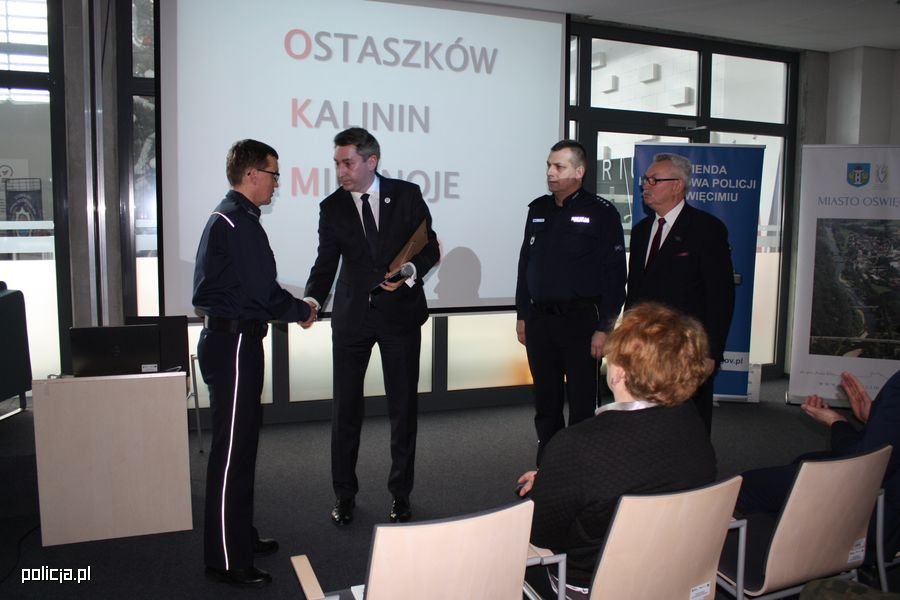 Prezes Stowarzyszenia Rodzina Policyjna 1939 przy KWP w Łodzi oraz Dyrektor Biura Historii i Tradycji KGP na ręce Zastępcy Komendanta Powiatowego Policji w Oświęcimiu przekazali Certyfikat Ambasadora OKM 1940, stanowiący o propagowaniu etosu Policji Państwowej. Wyjątkowe upominki w postaci pamiątkowych odznaczeń OKM 1940 otrzymali wszyscy uczestnicy tej niezwykłej lekcji historii.
