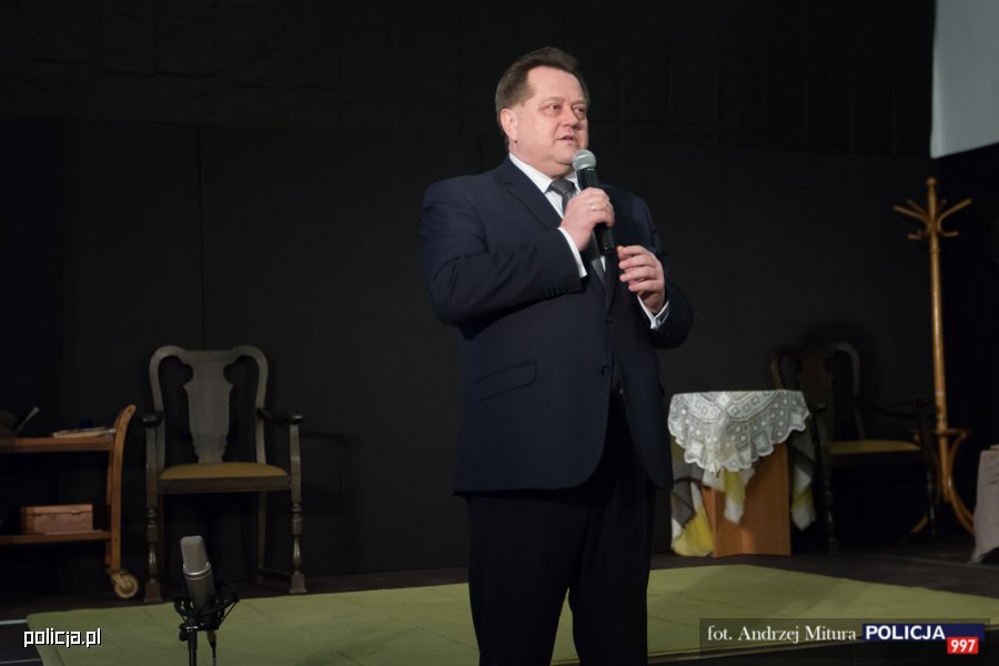 - Przed wojną amatorskie teatry i chóry były istotnym elementem budowania tożsamości środowiska policyjnego. Prawdziwym nośnikiem dumy, tradycji, etosu są bowiem ludzie. To ludzie najlepiej przekazują wartości, zachowują pamięć – mówił insp. Sławomir Cisowski. - Można powiedzieć, że to co dziś dzieje się w tej sali, narodziło się z pasji, a osobą, która była inicjatorką pomysłu i matkowała inicjatywie powstania Amatorskiej Sceny Teatralnej „Na Posterunku” jest mł. insp. dr Iwona Klonowska.