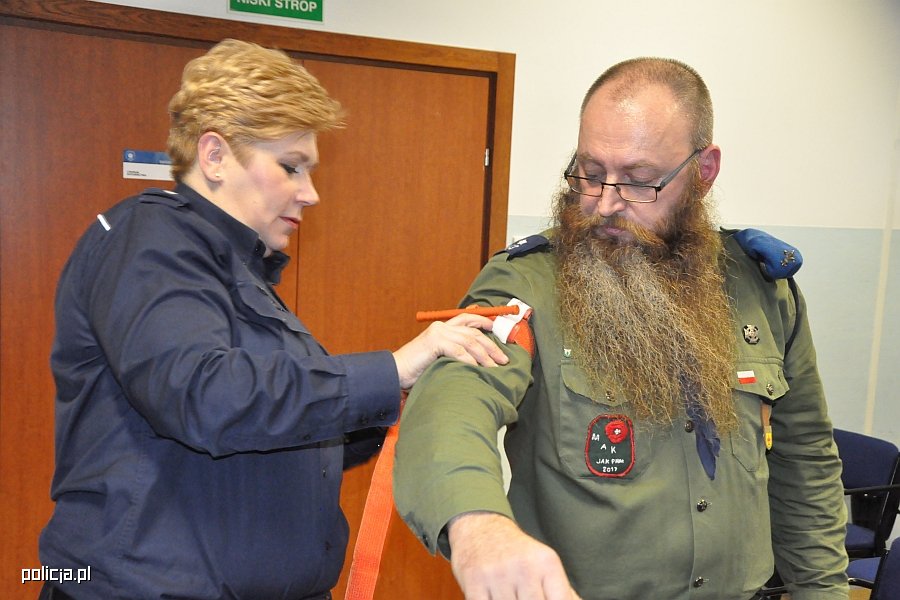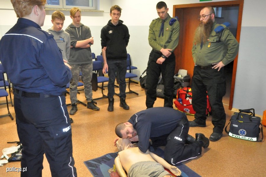 Policyjni wykładowcy Szkoły Policji w Słupsku kształcą harcerzy Hufca Ziemi Słupskiej ZHP w zakresie udzielania pierwszej pomocy. Wiedza przekazywana młodym ludziom dotyczy miedzy innymi udzielania pomocy w terenie otwartym i korzystania z przedmiotów przygodnych znajdujących się między innymi w lasach i w górach.