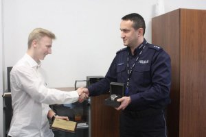 W poniedziałek (12 lutego br.) Komendant Powiatowy Policji w Krakowie mł. insp. Tomasz Drożdżak nagrodził 15-letniego Roberta za wzorową postawę obywatelską, dzięki której odnaleziony przez niego portfel, został zwrócony właścicielce.