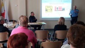 W trakcie spotkania policjanci również przedstawili i omówili zagrożenia na jakie narażone są osoby starsze. Podpowiedzieli jak się zachować w sytuacji, gdy do drzwi puka lub telefonuje nieznajomy. Wszystko po to, aby nie stać się ofiarą przestępstw, w których ofiarami stają się osoby starsze. Funkcjonariusze także zapoznali uczestników ze sposobami działań przestępców oraz informowali co zrobić, aby uniknąć stania się ich ofiarą.
