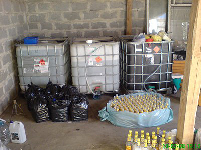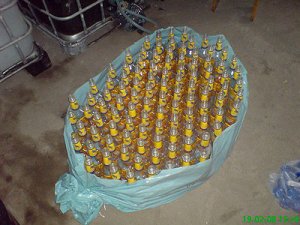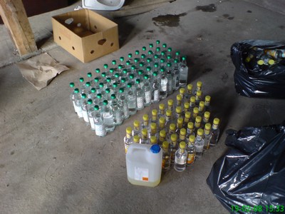 Gdy tylko funkcjonariusze z Mińska ustalili, że na jednej z posesji prowadzony jest nielegalny proceder, natychmiast postanowili to sprawdzić. Na miejsce udali się dzielnicowi i policjanci z sekcji do walki z przestępczością gospodarczą. W stodole znaleźli duże plastikowe zbiorniki, po tysiąc litrów każdy i kilkadziesiąt mniejszych wypełnionych alkoholem. W sumie funkcjonariusze zabezpieczyli około 3 tys. litrów procentowego trunku. Kilka worków z pustymi, szklanymi i plastikowymi, butelkami o pojemności od 0,2 do 1 litra. Do policyjnego depozytu trafiły również etykiety, reklamówki z nakrętkami, lejki i wężyki do rozlewania alkoholu. Policjanci znaleźli też bańkę z substancją służącą prawdopodobnie do oczyszczania alkoholu.