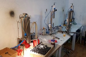 Na terenie tej samej posesji w sąsiednim budynku funkcjonariusze ujawnili kompletną, działającą linię produkcyjną służącą do rozlewania perfum, a przy niej pracujące dwie kobiety narodowości ukraińskiej. Podczas przeszukania policjanci i funkcjonariusze KAS zabezpieczyli gotowe półprodukty w postaci: szklanych fiolek, nakrętek, etykiet, mechanizmów do spryskiwania, perfum w płynie znajdujących się w 48 plastikowych bańkach o pojemności około 20 litrów, a także blisko 131 tys. sztuk kosmetyków bezprawnie oznaczonych znakami towarowymi znanych, światowych firm z branży perfumeryjnej.