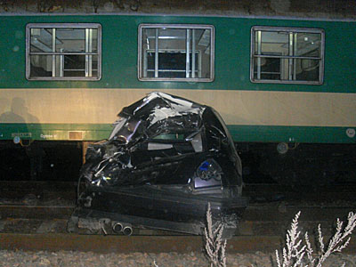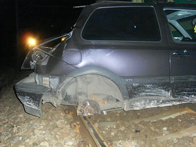 Nieodpowiedzialne zachowanie 40-letniego kierowcy vw golfa mogło doprowadzić do tragedii. Na szczęście nikomu nic się nie stało po tym jak w porzucony na torach samochód najechał pociąg. Kierujący autem Mariusz W. chwilę wcześniej uderzył w jadącego z naprzeciwka fiata seicento, po czym zjechał na prawe pobocze i zatrzymał się dopiero na torach. Tam zostawił auto i uciekł.
