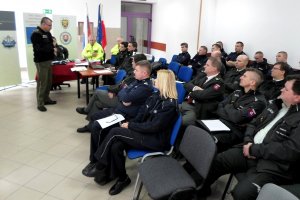 Szkolenie koordynował mł. insp. Piotr Kluz Naczelnik Wydziału Prewencji Komendy Wojewódzkiej Policji w Rzeszowie, który przedstawił zgromadzonym cel i zasadność kontynuowania współpracy na terenach przygranicznych w formie wspólnych patroli. Następnie mł. asp. Marek Bytnar z Wydziału Prewencji Komendy Wojewódzkiej Policji w Rzeszowie przedstawił podstawy prawne działania polsko-słowackich patroli. Omówił zadania i uprawnienia policjantów oraz zasady użycia lub wykorzystania środków przymusu bezpośredniego i broni palnej.