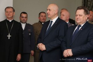 Jajka, symbol nowego życia i jeden z symboli Świąt Wielkanocnych, pobłogosławił biskup polowy Wojska Polskiego, delegat Konferencji Episkopatu Polski ds. Duszpasterstwa Policji gen. bryg. Józef Guzdek. Świąteczne życzenia funkcjonariuszom złożył również prawosławny ordynariusz WP abp. Jerzy Pańkowski oraz ks. Tomasz Wigłasz, który zastępował ewangelickiego biskupa wojskowego Mirosława Wolę.