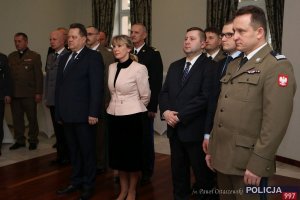 Policja reprezentowana była przez komendantów wojewódzkich Policji, dyrektorów biur w Komendzie Głównej Policji, kierownictwo Centralnego Biura Śledczego Policji i Centralnego Laboratorium Kryminalistycznego Policji. Na czele policyjnej reprezentacji stał komendant główny Policji nadinsp. Jarosław Szymczyk, wraz ze swoimi zastępcami: nadinsp. Heleną Michalak i nadinsp. Janem Lachem. Obecni byli przedstawiciele kierownictwa pozostałych służb MSWiA. Życzenia składali: minister Joachim Brudziński, wiceminister Jarosław Zieliński, nadinsp. Jarosław Szymczyk, komendant Służby Ochrony Państwa gen. bryg. SOP Tomasz Miłkowski, komendant główny Państwowej Straży Pożarnej gen. brygadier Leszek Suski i komendant główny Straży Granicznej gen. bryg. SG Tomasz Praga.