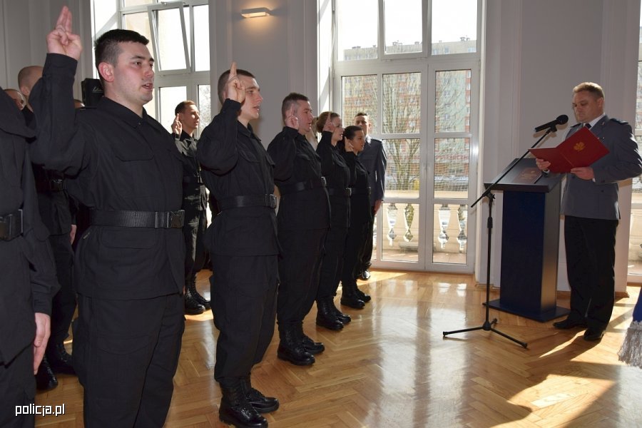 24 nowych policjantów w tym 4 kobiety i 20 mężczyzn, rozpoczęło służbę w marcu 2018 roku. Dzisiaj, 28.03.2018r., funkcjonariusze wypowiedzieli słowa roty, które odebrał I Zastępca Komendanta Wojewódzkiego Policji w Łodzi mł. insp.Tomasz Olczyk.
