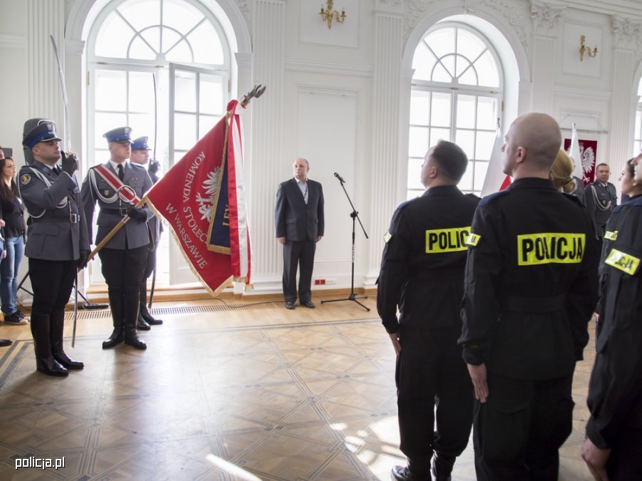 Po złożeniu meldunku Komendantowi Stołecznemu Policji wprowadzono poczet sztandarowy. Następnie nowo przyjęci policjanci złożyli ślubowanie. Słowa roty młodzi funkcjonariusze wypowiedzieli za Komendantem Stołecznym Policji nadinspektorem Pawłem Dobrodziejem. Po ślubowaniu wszyscy otrzymali legitymacje policyjne.