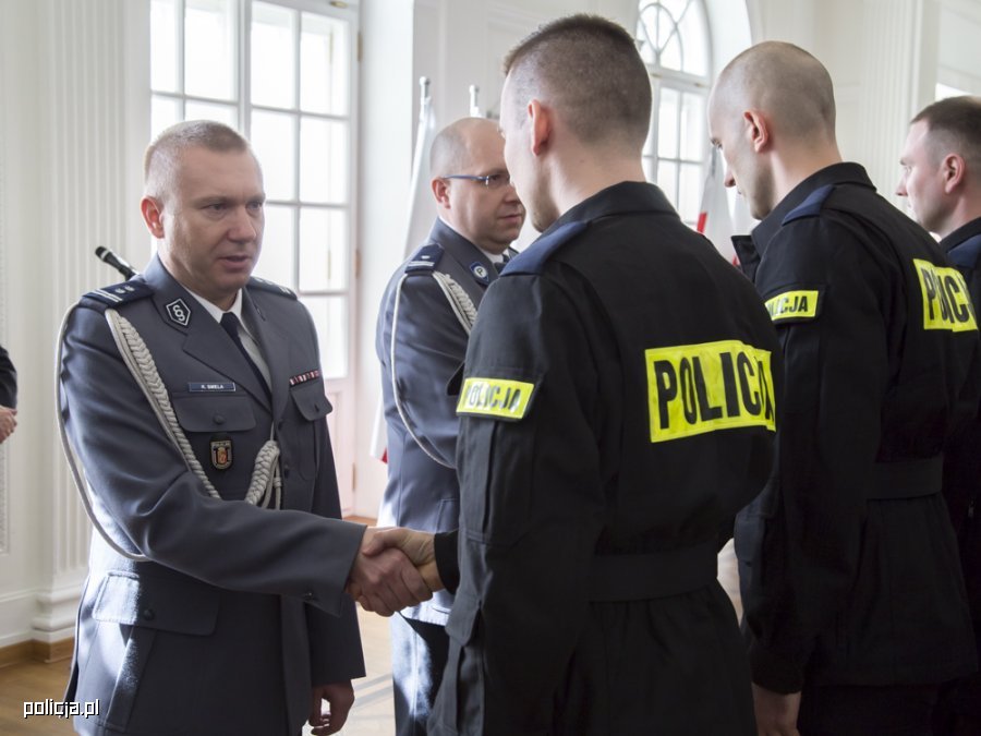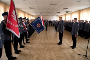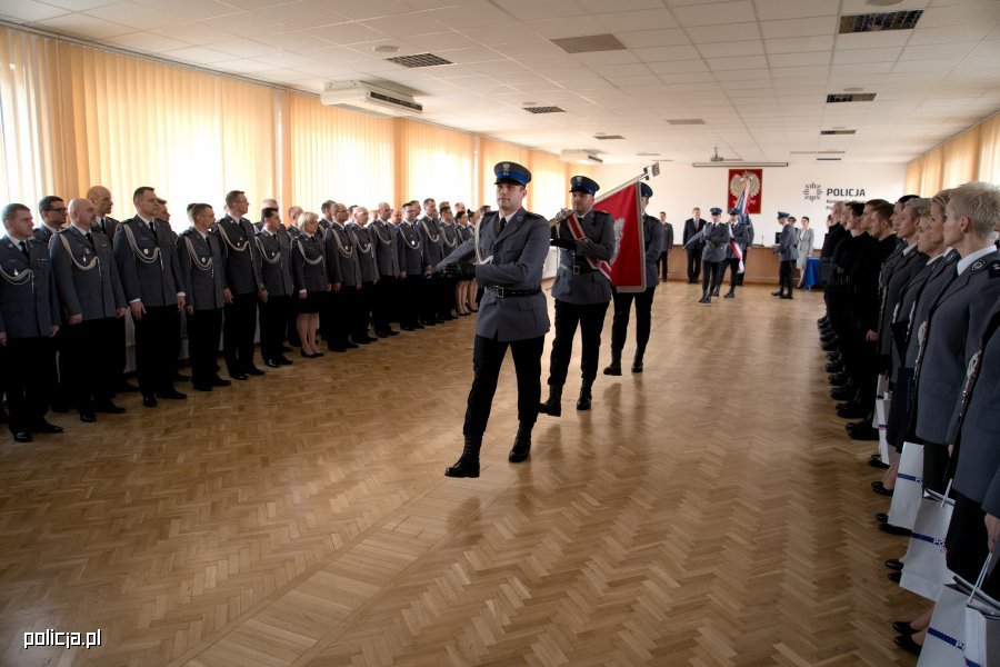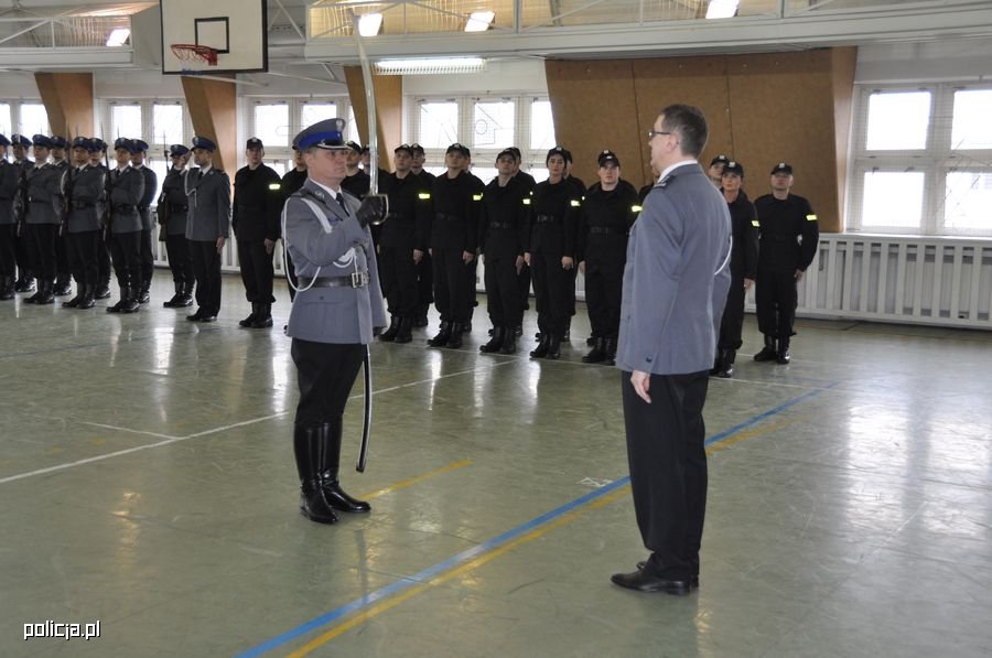 Insp. Paweł Spychała podziękował i pogratulował nowo przyjętym funkcjonariuszom. Życzył, aby sprawdzili się podczas szkolenia podstawowego, które jest sprawdzianem charakterów. Życzył również, by dalej rozwijali karierę i otrzymali szlify oficerskie, tak jak starsi koledzy, którzy podczas uroczystości mianowani zostali na pierwszy stopień oficerski „podkomisarza”.