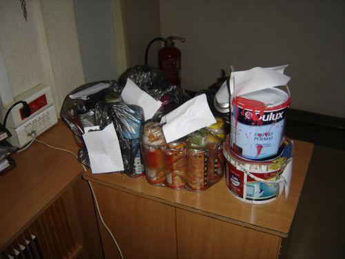 Wczoraj kilkanaście minut przed 16:00 policjanci patrolujący rejon Al. Jerozolimskimi zauważyli grupkę kilku mężczyzn, z których jeden niszczył ścianę budynku, zamalowując ją farbą w aerozolu. Szybka reakcja funkcjonariuszy pozwoliła na zatrzymanie czterech chuliganów. W trakcie przeszukania mundurowi znaleźli przy 20-latkach kilkadziesiąt puszek i aerozoli z farbami.