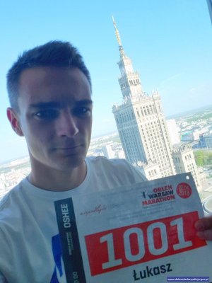 Sierżant Łukasz Król to policjant drogówki z komendy powiatowej w Bolesławcu, którego pasją jest bieganie. Funkcjonariusz po raz kolejny brał udział w warszawskim maratonie. Na swoim koncie ma również Bieg Rzeźnika na dystansie 82 km. Świetna kondycja i hart ducha to niewątpliwe atuty, które policjant wykorzystuje również w codziennej służbie.
