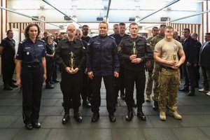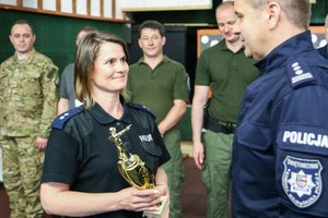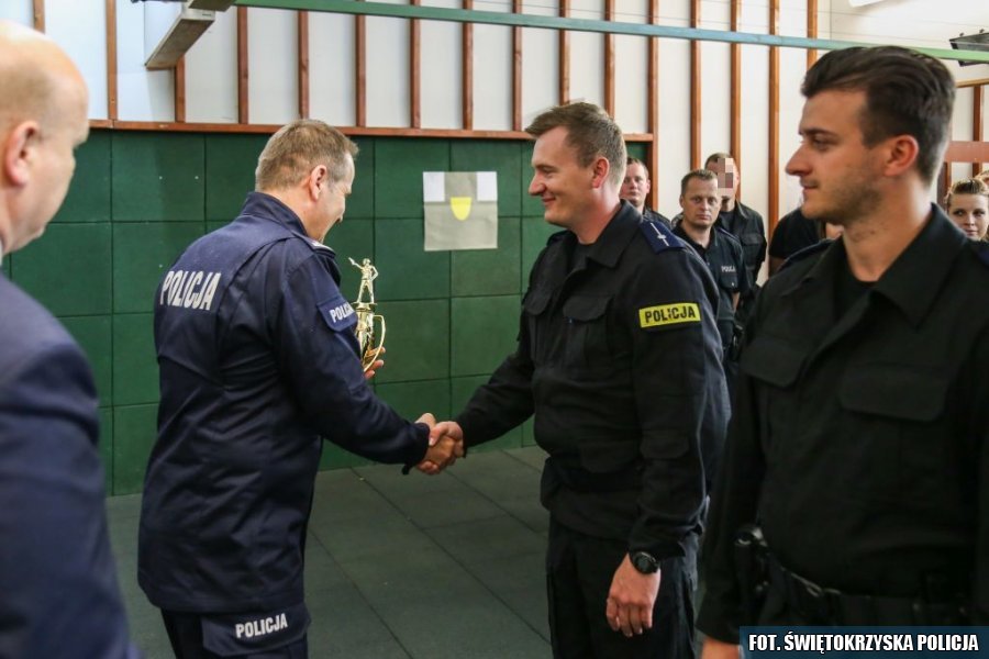 Laureatom pogratulował i wręczył puchary Komendant Wojewódzki Policji w Kielcach insp. Dariusz Augustyniak, Naczelnik Kadr i Szkolenia KWP w Kielcach mł. insp. Anna Adamczyk – Kita oraz Przewodniczący NSZZP województwa świętokrzyskiego nadkom. Jerzy Kaniewski.