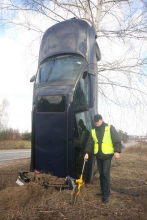 Tylko dzięki akrobatycznym umiejętnościom swojego opla 21–letni mieszkaniec Staszowa może mówić o wielkim szczęściu. Kiedy młodzieniec jechał zmęczony po nocnym dyżurze do domu wraz ze swoja babcią, najprawdopodobniej przysnął i zaparkował na… brzozie. Apelujemy o ostrożną jazdę gdyż nie wszyscy kierowcy mogą liczyć na aż takie "kaskaderskie" zdolności swoich samochodów.