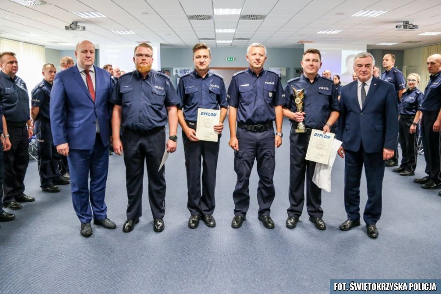 Dziś w Komendzie Wojewódzkiej Policji w Kielcach zakończyły się dwudniowe wojewódzkie eliminacje konkursu „Dzielnicowy Roku”. Spośród 26 funkcjonariuszy reprezentujących 12 komend powiatowych oraz Komendę Miejską Policji w Kielcach wyłoniono trzech najlepszych dzielnicowych. Dodatkowo po rozwiązaniu testu wiedzy poznaliśmy również najlepszego Kierownika Rewiru Dzielnicowych. Zwycięzcy otrzymali gratulację od m.in. Wicewojewody Świętokrzyskiego Andrzeja Bętkowskiego oraz Pierwszego Zastępcy Komendanta Wojewódzkiego Policji w Kielcach insp. Artura Bieleckiego.