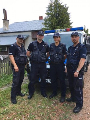 Policjanci od razu przystąpili do akcji gaśniczej. Nie patrząc na duże zadymienie wewnątrz budynku funkcjonariusze bez wahania weszli do środka, odłączyli źródła prądu i przy pomocy gaśnic samochodowych przystąpili do gaszenia źródła ognia. Po ich wykorzystaniu, mundurowi sięgnęli również po wiadra znajdujące się na posesji i czerpiąc wodę z kranu na zewnątrz budynku skutecznie ugasili płomienie. Następnie sprawdzili dokładanie wnętrze domu czy nikt nie został poszkodowany w wyniku tego zdarzenia. Na szczęście właścicieli budynku nie było w tym czasie w budynku.