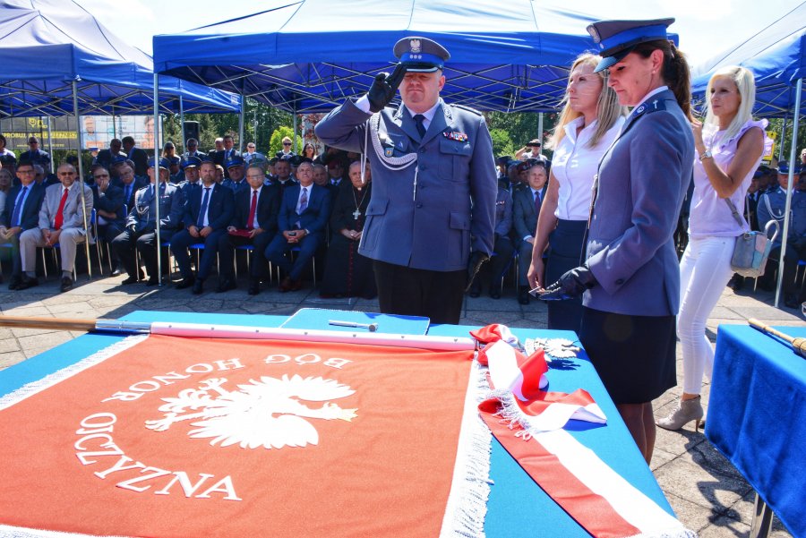 Kolejnym punktem apelu było wręczenie sztandaru Komendzie Powiatowej Policji w Zgierzu. Sztandar ufundowało społeczeństwo Ziemi Zgierskiej. Przedstawiciele fundatorów i gości zaproszonych oraz zgierskich policjantów wbili gwoździe honorowe w drzewiec sztandaru, po czym Biskup Pomocniczy Archidiecezji Łódzkiej ks. Ireneusz Pękalski poświęcił sztandar. Starosta Zgierski Pan Bogdan Jarota wraz z Komendantem Głównym Policji nadinsp. Jarosławem Szymczykiem, wręczyli sztandar Komendzie Powiatowej Policji w Zgierzu „jako symbol najwyższego uznania, godności i dumy”, który odebrał Komendant Powiatowy Policji w Zgierzu podinsp Robert Śniecikowski i oddał mu honor.