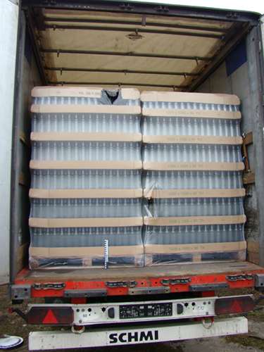 Wczesnym rankiem kryminalni pojechali na parking strzeżony przy ulicy Nocznickiego. Tam znaleźli dwie naczepy samochodowe. Jedna z nich, typu chłodnia, zamknięta była na kłódkę. Po sprawdzeniu okazało się, że jest ona poszukiwana przez policję w Niemczech. Ponadto na naczepie widniały tablice rejestracyjne od innego pojazdu. Druga naczepa została skradziona w Danii. Wewnątrz niej znajdowało się kilkadziesiąt tysięcy pustych butelek o pojemności 0,7 litra, w drugiej - ponad 16 ton masła. Obie naczepy zostały skradzione w tym roku. Odholowano je na policyjny parking.