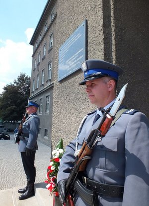Przy pamiątkowej tablicy, która mieści się przed głównym wejściem do budynku Komendy Wojewódzkiej Policji w Opolu, zapłonęły znicze. Funkcjonariusze z Samodzielnego Pododdziału Prewencji Policji wystawili tam wartę honorową.