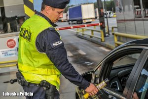 W województwie lubuskim głównymi szlakami komunikacyjnymi są autostrada A2 oraz droga ekspresowa S3. Ta pierwsza biegnie międzynarodową trasą E-30, gdzie codziennie odbywa się wzmożony ruch transgraniczny. Każdy podróżny korzystający z tej drogi ma dwa podstawowe cele – dotrzeć na miejsce sprawnie i co najważniejsze BEZPIECZNIE. Aby było to możliwe Lubuska Policja cyklicznie przeprowadza działania pn. „Trzeżwość A-2”, podczas których mundurowi kontrolują stan psychofizyczny kierowców. Szczególnym nadzorem objęci są kierujący samochodami ciężarowymi, którzy autostradą pokonują kilkusetkilometrowe trasy. Aby kontrole odbywały się płynnie, policjanci prowadzą je przy autostradowych bramkach. Kiedy pojazdy kolejno się zatrzymują funkcjonariusze przeprowadzają badanie trzeźwości.