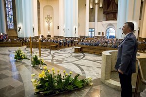 Wczoraj w siedzibie śląskiej Policji odbyła się uroczystość upamiętniająca zmarłych i pomordowanych policjantów II RP z okazji obchodów 79. rocznicy wybuchu II wojny światowej oraz 25-lecia utworzenia i poświęcenia Grobu Policjanta Polskiego. Tradycyjnie już we wrześniu spotkanie takie organizują Stowarzyszenie "Rodzina Policyjna 1939 r." wspólnie z Komendą Wojewódzka Policji w Katowicach. Obchody upamiętniające tragiczne wydarzenia naszej historii i ofiarę poniesioną przez mundurowych, w tym policjantów II Rzeczpospolitej, poprzedziła msza święta w katowickiej Archikatedrze. Następnie uczestnicy obchodów przed świątynią uformowali kolumnę marszową. Stamtąd też odbył się przemarsz uczestników do Komendy Wojewódzkiej Policji w Katowicach. Uczestnicy zebrali się przed Grobem Policjanta Polskiego. W tym roku obchodzimy 25-lecie utworzenia i poświęcenia tego pomnika. Rolę gospodarzy pełnili Prezes Ogólnopolskiego Stowarzyszenia "Rodzina Policyjna 1939 r." Teresa Bracka oraz Komendant Wojewódzki Policji w Katowicach nadinsp. Krzysztof Justyński. Na obchody przybyli przedstawiciele władz rządowych, z I wicewojewodą Janem Chrząszczem na czele, samorządu terytorialnego, służb mundurowych, policyjnych związków zawodowych, instytucji na co dzień współpracujących ze śląską Policją, duchowieństwa, harcerstwa, emerytowani generałowie policji oraz młodzież szkolna. Liczną grupę gości stanowili kombatanci oraz krewni poległych i pomordowanych policjantów.
