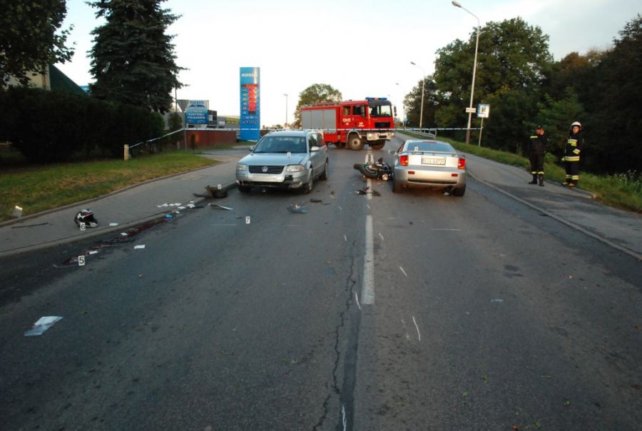 Do tragicznego w skutkach wypadku doszło w sobotę po godz. 16 na ul. Sanowej w Jarosławiu. Jak wynika ze wstępnych ustaleń policjantów, kierujący motocyklem honda, prawdopodobnie nie dostosował prędkości do panujących na drodze warunków, stracił panowanie nad pojazdem, położył motocykl i uderzył w jadącego z naprzeciwka volkswagena passata, a następnie siłą odrzutu uderzył w toyotę. Kierujący motocyklem, 18-letni mieszkaniec powiatu jarosławskiego, zmarł na miejscu wypadku.