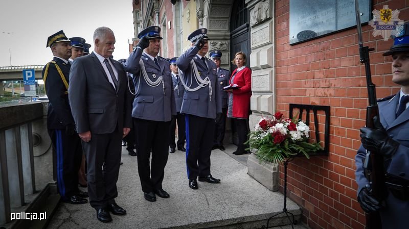 Przy tablicy wystawiono posterunek honorowy składający się z funkcjonariuszy Oddziału Prewencji Policji w Gdańsku, poświęcenia dokonał ks. Bartłomiej Stark, następnie wiązankę kwiatów pod tablicą złożyli Komendant Wojewódzki Policji w Gdańsku nadinsp. Jarosław Rzymkowski, Wicewojewoda Pomorski – p. Mariusz Łuczyk oraz Dyrektor Biura Historii i Tradycji Policji KGP – nadkom. Krzysztof Musielak.