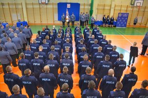 Komendant wręczając nowym funkcjonariuszom legitymacje służbowe powitał ich w szeregach Policji i w krótkim przemówieniu podkreślił znaczenie Policji i jej rolę w służbie społeczeństwu. Zwrócił uwagę na szczególny charakter dzisiejszej uroczystości, która łączy różne etapy drogi zawodowej w niebieskim mundurze. Na zakończenie insp. Andrzej Łapiński zwrócił się do rodzin nowych funkcjonariuszy prosząc o wyrozumiałość i wsparcie swoich najbliższych w tej niełatwej służbie.