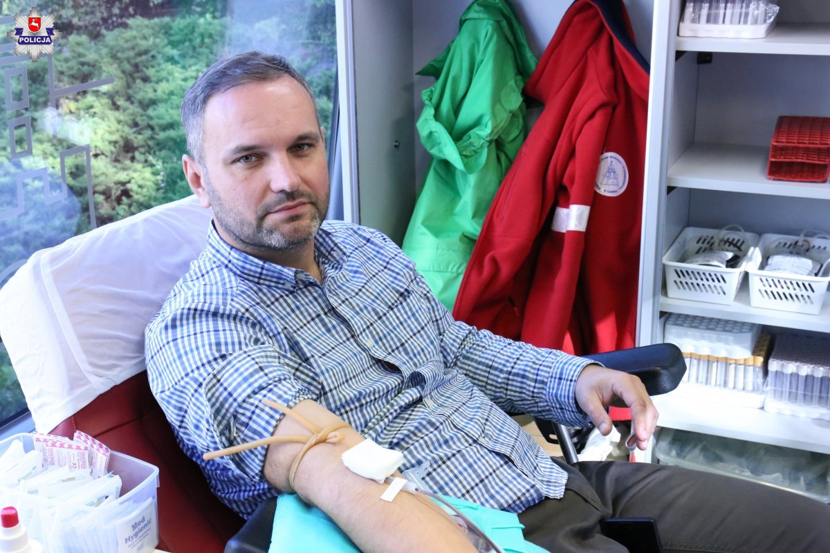 Szybkiego powrotu do zdrowia życzył dziś Michałowi Komendant Wojewódzki Policji w Lublinie insp. Robert Szewc, który wraz ze swoim zastępcą także oddał swoją krew, by wspomóc chorego 10-latka.