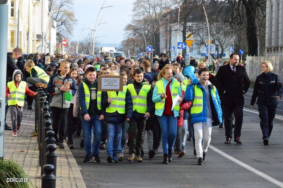 W ramach dzisiejszego happeningu policjanci zorganizowali przemarsz ulicami miasta, do którego włączyło się pół tysiąca dzieci z koszalińskich podstawówek. Uczniowie przygotowali tematyczne transparenty i banery.