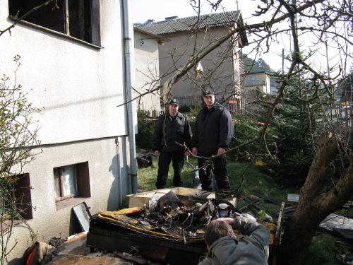 Poparzony 64-latek po reanimacji odzyskał przytomność. Doznał obrażeń głowy, szyi i klatki piersiowej oraz poparzeń dróg oddechowych. Policjanci zaraz wrócili do budynku w poszukiwaniu innych domowników, ale płomienie teraz nie pozwoliły im wejść do środka.