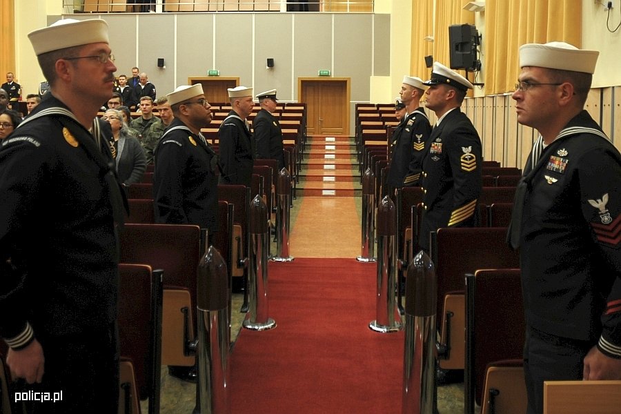 Choć uroczystość odbywała się w auli słupskiej Szkoły Policji, która na co dzień współpracuje ściśle z Amerykanami, to cały ceremoniał przebiegał tak, jakby miało to miejsce na okręcie. Wejścia zaproszonych dowódców jednostek oraz ustępującego dowódcy i obejmującego obowiązki zapowiadane były sygnałem dawanym gwizdkiem przez oficera wachtowego. Wszystkie komendy wydawane były tak, jak na okręcie wojennym.