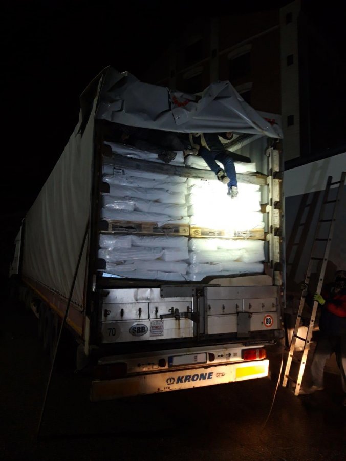 Na miejsce skierowano patrol. Po otwarciu zabezpieczonej naczepy stwierdzono, że w środku było dwóch mężczyzn. Leżeli na paletach z opakowaniami soi, tuż pod dachem naczepy. Osoby te nie miały przy sobie żadnych dokumentów. Wstępnie ustalono, że są to obywatele Afganistanu.
