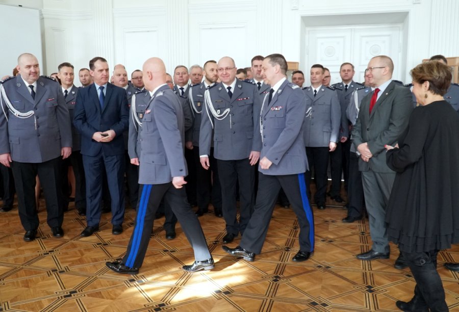 Następnie komendant odniósł się do zmian personalnych, które miały miejsce w ostatnich dniach w KGP. – Z wielkim żalem, z uwagi na problemy zdrowotne, pożegnałem swoich dwóch zastępców: pana generała Andrzeja Szymczyka i znanego Wam doskonale, z uwagi na częste wizyty w KSP przy okazji policyjnych zabezpieczeń, generała Jana Lacha, który nadzorował pion prewencji. (…) W tej sytuacji zależało mi, by w kierownictwie polskiej Policji funkcjonował ktoś z garnizonu stołecznego. Niezwykle cenię sobie Wasz profesjonalizm, funkcjonariuszy i pracowników KSP, który widzę każdego dnia. Szczególnie jest to widoczne, gdy przychodzi mierzyć się z tymi największymi wyzwaniami. Dziś ten poziom, budowany przez lata, jest na najwyższym poziomie w kraju. Choć z komendantem Tomaszem współpracujemy dość krótko, to na przestrzeni ostatnich kilkunastu miesięcy zrobił on na mnie świetne wrażenie, i jako funkcjonariusz z ogromnym zaangażowaniem, profesjonalnym podejściem do swoich obowiązków, ale co nie mniej ważne w mojej filozofii dowodzenia polską Policją - jako człowiek. Podkreślał to także w rozmowie ze mną generał Dobrodziej. Komendant Tomasz to świetny fachowiec, ale przede wszystkim bardzo dobry człowiek. (…) Jestem przekonany, że ten bagaż doświadczeń, które już ma i to świeże spojrzenie na Policję stanowi taki kapitał, który pozwoli nam wspólnie tą formacją kierować i prowadzić do kolejnych sukcesów, opartych na opiniach mieszkańców i odwiedzających nasz kraj. Życzę Tomaszu dużo satysfakcji z tych nowych wyzwań. Mam nadzieję, że wspólnie z komendantami: Dariuszem Augustyniakiem i Kamilem Brachą stworzymy zespól, który będzie w sposób efektywny i efektowny kierował polska Policją. Dziękuję całemu garnizonowi stołecznemu, dziękuję generałowi Dobrodziejowi.