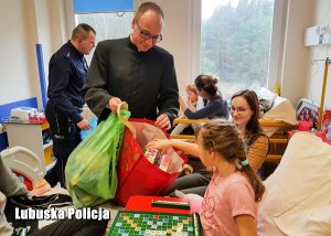 Policjanci z Komendy Powiatowej Policji w Nowej Soli przez cały rok włączają się w różne akcje charytatywne dla osób potrzebujących. Tym razem zorganizowali zbiórkę zabawek i odzieży dla dzieci z nowosolskiego szpitala. W piątek mundurowi wręczyli maluchom pluszaki, czym sprawili im wiele radości. W przekazaniu uczestniczył kapelan nowosolskiego szpitala - ksiądz Tomasz Duszczak, który wraz z policjantami życzył im szybkiego powrotu do zdrowia. Policjanci chcą, aby dzieci przebywające w szpitalu choć przez chwilę zapomniały o codziennych zmaganiach z chorobą, a na ich twarzach pojawił się uśmiech.