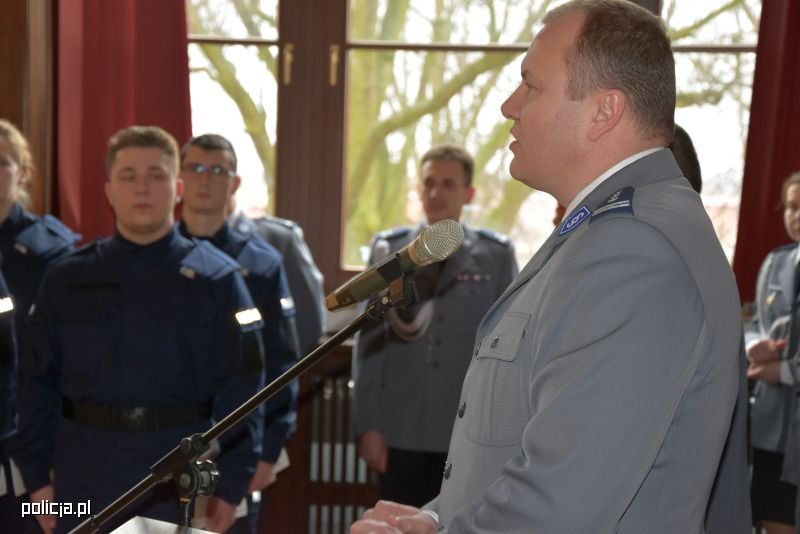 I Zastępca Komendanta Wojewódzkiego Policji insp. Jarosław Pasterski w krótkim wystąpieniu powitał nowo przyjętych i ich najbliższych. Podkreślał, że służba jaką wybrali jest trudna i odpowiedzialna. Podejmowanie wyzwań z nią związanych będzie nie tylko próbą dla nich samych ale również dla ich rodzin. Pogratulował policjantom i życzył sukcesów i wytrwałości na nowej drodze zawodowej. Słowa policyjnej roty wypowiedziało 37 nowych policjantów. Funkcjonariusze zostali przyjęci do służby w garnizonie zachodniopomorskim z dniem 7 marca 2019 r. Teraz przed nowo przyjętymi policjantami siedmiomiesięczne szkolenie, po którym rozpoczną służbę w jednostkach zachodniopomorskiego garnizonu Policji. Najwięcej z nich – 10 osób trafi do Oddziału Prewencji Policji w Szczecinie. 4 osoby zasilą szeregi Komendy Miejskiej Policji w Szczecinie. Również Komenda Wojewódzka Policji zyska nowych funkcjonariuszy. Zasilone zostaną także szeregi komend miejskich, powiatowych oraz komisariatów w regionie, m.in. w Koszalinie, Świnoujściu, Białogardzie, Choszcznie, Goleniowie, Gryficach, Kamieniu Pomorskim, Kołobrzegu, Łobzie, Myśliborzu, Pyrzycach, Sławnie, Stargardzie, Szczecinku, Świdwinie i Wałcza .