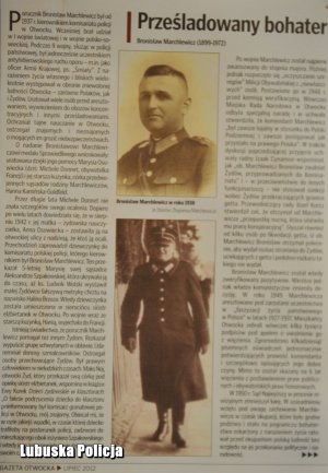Uczniowie klasy policyjnej w ramach konkursu „Policjanci w służbie historii" podczas żywej lekcji historii zaprezentowali sylwetkę wybitnego policjanta majora Bronisława Marchlewicza (1899-1972) którego postawa może być wzorem służby Polsce i Polakom. Bronisław Marchlewicz walczył w Pierwszej Wojnie Światowej i wojnie polsko-sowieckej. Jednak jego postać znana jest głównie z działalności podczas Drugiej Wojny Światowej, kiedy jako kierownik Policji w Otwocku i członek granatowej Policji uchronił wiele osób, w tym Żydów przed aresztowaniami. Jednocześnie działał w ruchu oporu jako oficer Kadry Polski Niepodległej, Korpusu Bezpieczeństwa i Armii Krajowej pod pseudonimem „Śmiały". W roku 2004 został odznaczony medalem Sprawiedliwy wśród Narodów Świata przyznawanym przez jerozolimski Instytut Jad Waszem. W 2009 roku za bohaterską postawę i niezwykłą odwagę wykazaną w ratowaniu Żydów podczas Drugiej Wojny Światowej, za wybitne zasługi w obronie godności człowieczeństwa i praw ludzkich został pośmiertnie odznaczony Krzyżem Komandorskim z Gwiazdą Orderu Odrodzenia Polski.