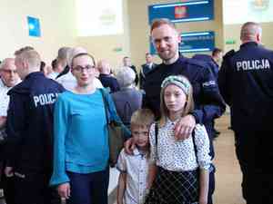 Podziękował rodzinom nowych policjantów za obecność podczas uroczystości i prosił o wsparcie dla funkcjonariuszy w początkowym okresie służby.