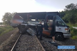 Kierowca autobusu wjechał wprost pod pociąg. Policjanci apelują o ostrożność