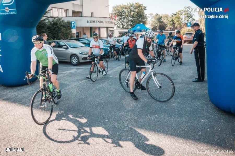 Policjanci wraz ze swoimi emerytowanymi kolegami przejechali 100 km z okazji 100. rocznicy Polskiej Policji. Swoją podróż rozpoczęli z samego rana, tuż po godzinie 8.00. W uroczystym rozpoczęciu przed budynkiem komendy wziął udział I Zastępca Prezydenta Miasta Jastrzębia-Zdroju Roman Foksowicz oraz Komendant Miejski mł insp. Mirosław Jordan. Trasa przebiegała przez Jastrzębie-Zdrój, Pniówek, Pawłowice, Mizerów, Kryry, Kobielice, Kobiór, Pszczyna, Goczałkowice-Zdrój, Strumień, Zbytków, Jarząbkowice, Pielgrzymowice i ponownie Jastrzębie-Zdrój. W trakcie przeprawy uczestnicy mieli przerwy przy Muzeum Zamkowym w Pszczynie, na zaporze w Goczałkowicach oraz w pobliżu fontanny z solanką w Strumieniu. W drużynie policyjnej panowała wspaniała, sportowa atmosfera. Choć trasa nie była łatwa, a do tego upał dał się we znaki zawodnikom, wszyscy dzielnie walczyli, aby dojechać do mety. Inicjatorem całej akcji byli miłośnicy jazdy na rowerze asp. szt. Adam Kogut i asp. szt. Sylwester Pająk.